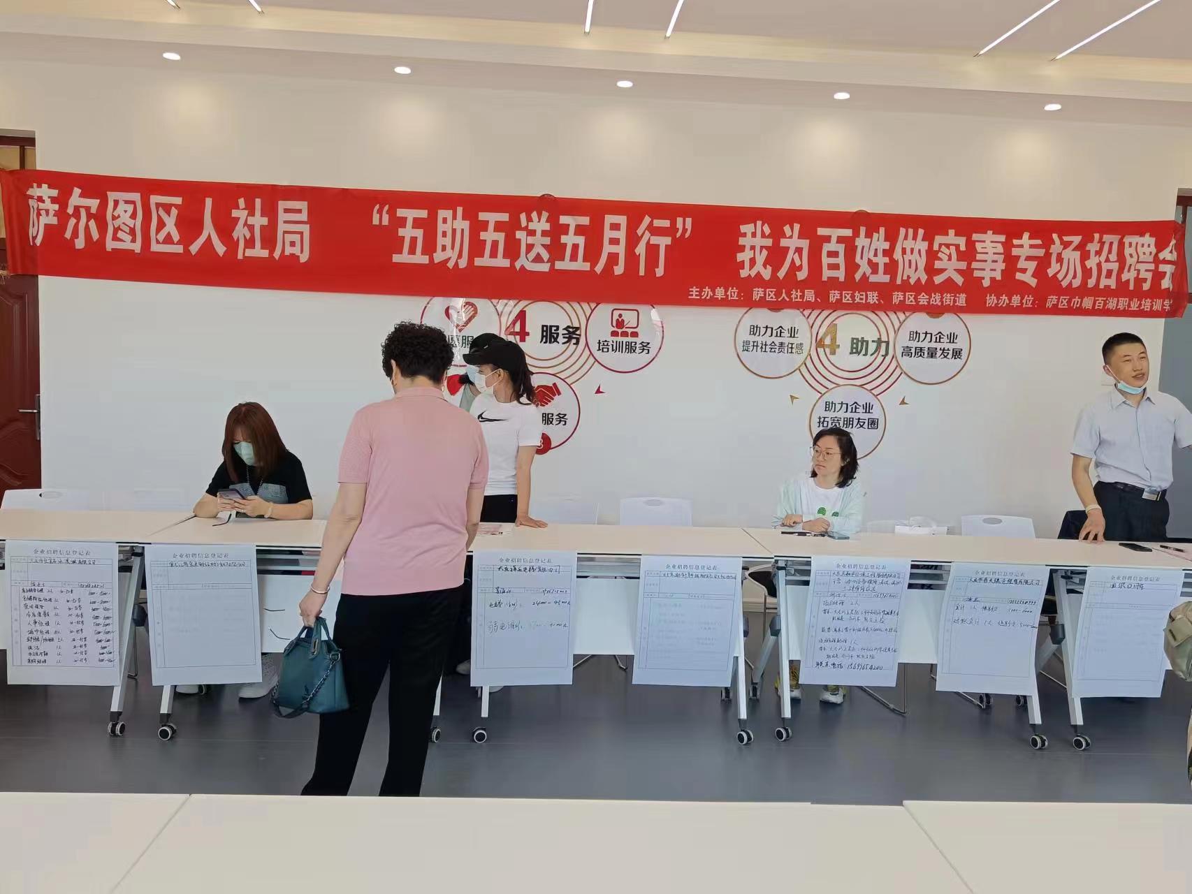 5月24日9:00-11:00時(shí),在薩爾圖區(qū)人才市場(chǎng)(原二十三中二樓)舉行了薩爾圖區(qū)人社局“五助五送五月行”我為百姓做實(shí)事專場(chǎng)招聘會(huì),本次招聘會(huì)由薩爾圖區(qū)多家單位聯(lián)合舉辦,共有45家企業(yè)提供就業(yè)崗位50余個(gè)。在本次招聘會(huì)中,國(guó)盛人力共接待了部分求職者50人次的咨詢,提供了20余個(gè)崗位,其中有25人填寫(xiě)了個(gè)人求職信息。