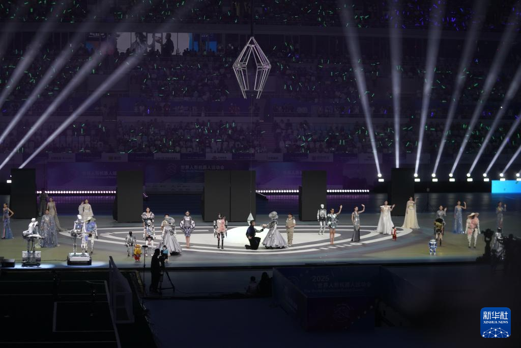 ??歌舞節(jié)目《歡迎來到碳基生命的世界》中,人類舞者與機器人以流暢協(xié)作演繹“碳基與硅基的對話”;服飾走秀節(jié)目《天工霓裳》則將非遺技藝與未來設(shè)計完美融合……14日的開幕式上,超百支戰(zhàn)隊閃耀“冰絲帶”,各式機甲競展風(fēng)采,機器人街舞、戲曲輪番登場,更與專業(yè)街舞團聯(lián)袂獻藝,生動演繹科技與人類文明的碰撞交融。隨著舞臺中央的“智芯”裝置——鑲嵌藍色晶體芯片的金屬四棱錐被點亮,2025世界人形機器人運動會正式啟動。