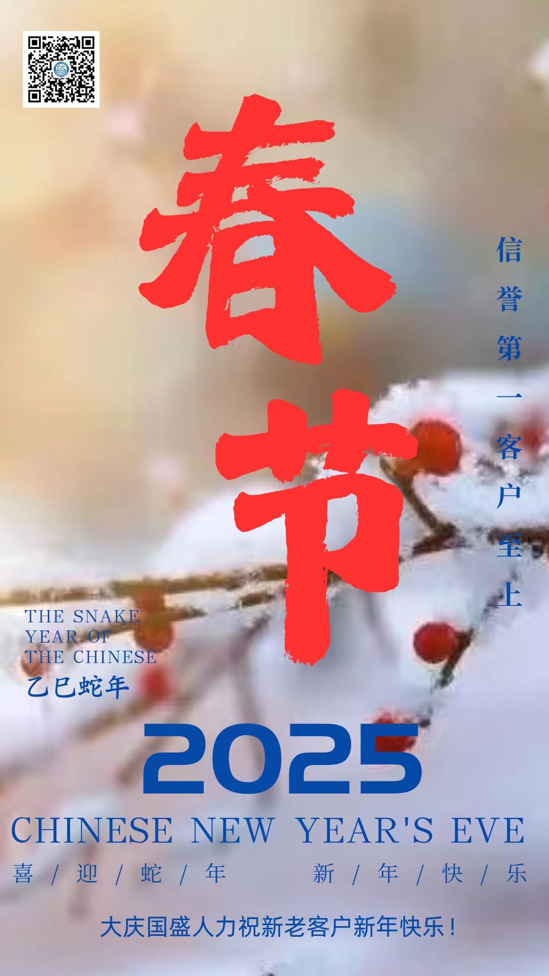 鞭炮聲聲,喚醒了沉睡的新年;瑞雪飄飄,帶來(lái)了新春的祝福。在這辭舊迎新的美好時(shí)刻,大慶市國(guó)盛人力資源管理有限公司向一直以來(lái)支持和信任我們的客戶、合作伙伴,以及每一位關(guān)注我們的朋友,致以最誠(chéng)摯的新年祝福!